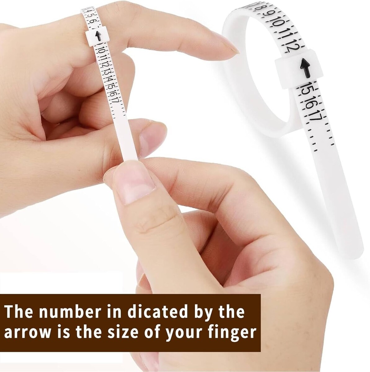 Flexible Tape Paper Card for Easy DIY:Soft, marked measuring tapes and a foldable paper sizer card simplify finger measurement. Follow the instructions to wrap and read sizes effortlessly.
