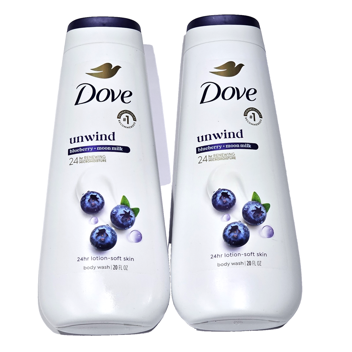2 Pack Dove Unwind Blueberry + Moon Milk 24hr Renewing Body Wash 20oz.