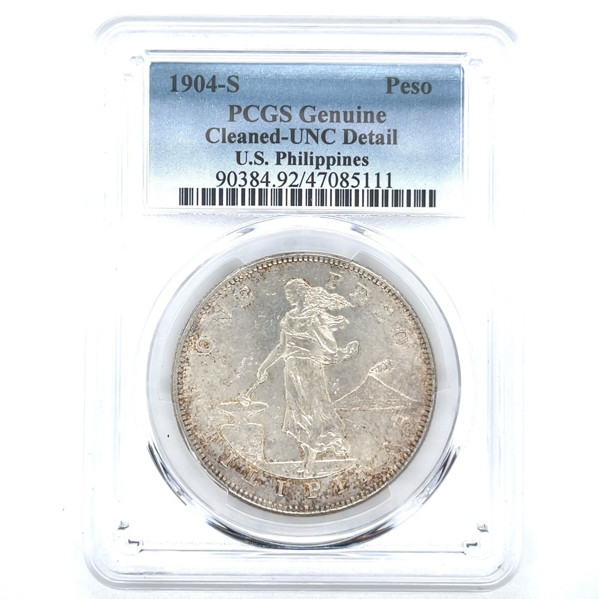 1904-S U.S. Philippines Silver Peso PCGS Genuine Cleaned UNC Detail Coin