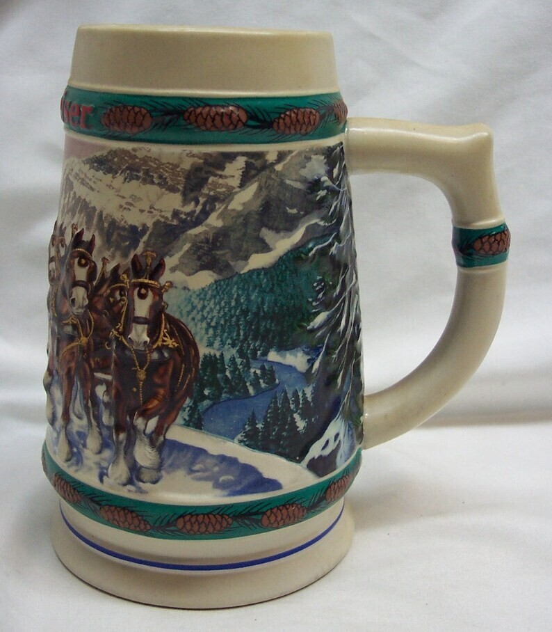 VINTAGE 1993 BUDWEISER Clydesdale Horse BEER STEIN MUG Christmas Holiday