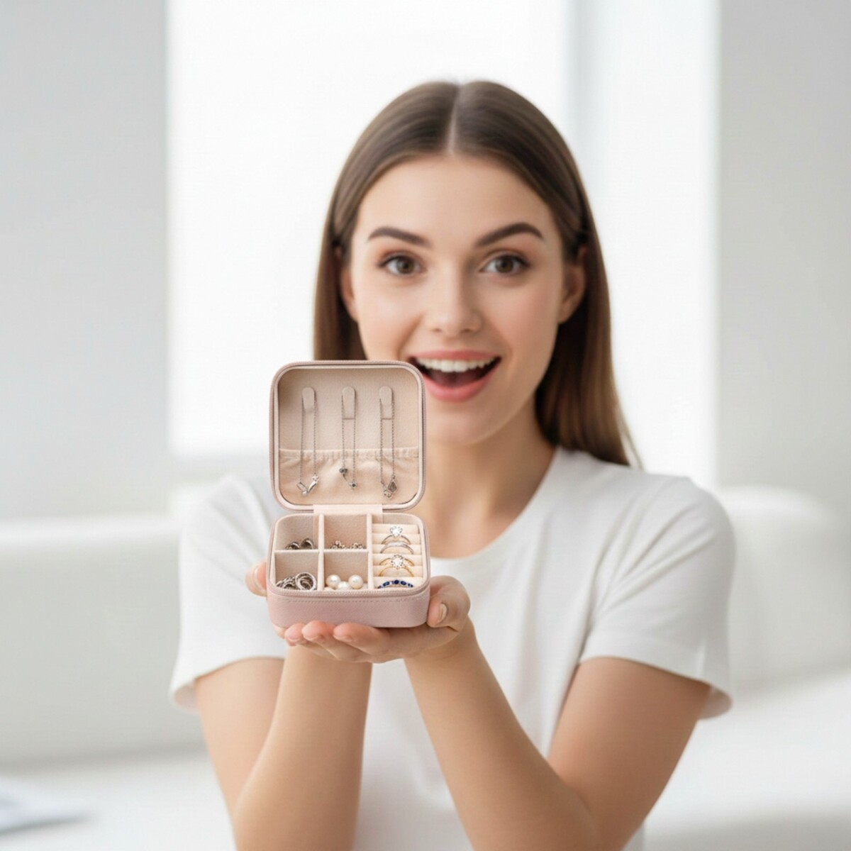 Keep your favorite pieces safe on the go with this compact travel jewelry case. Perfect for travel, gifting, or daily use.