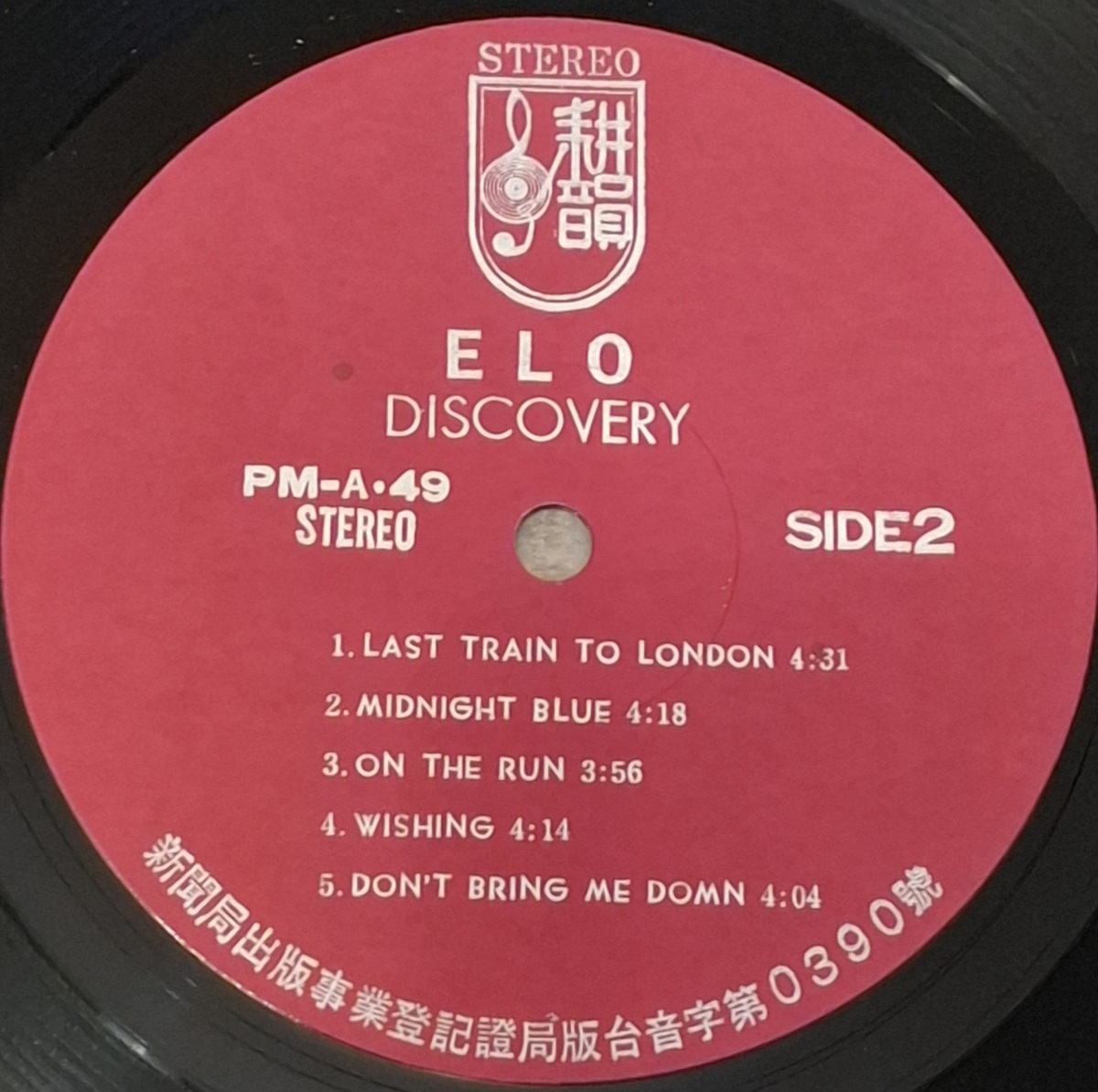 Taiwan pressing of ELO ? Discovery (Stereo LP).