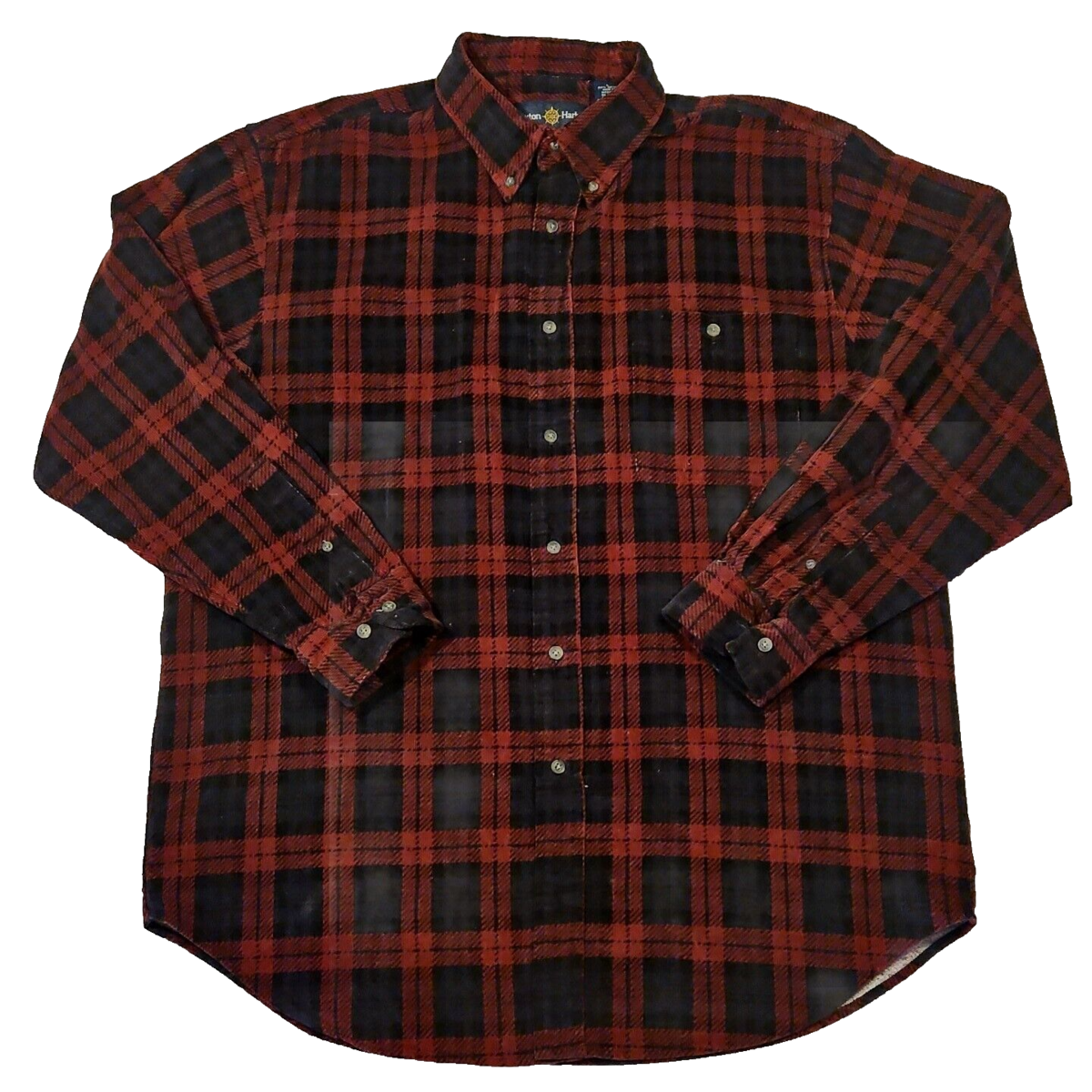 Lawton Harbor Corduroy Shirt Mens Size L Red Plaid Long Sleeve Cotton Button Up