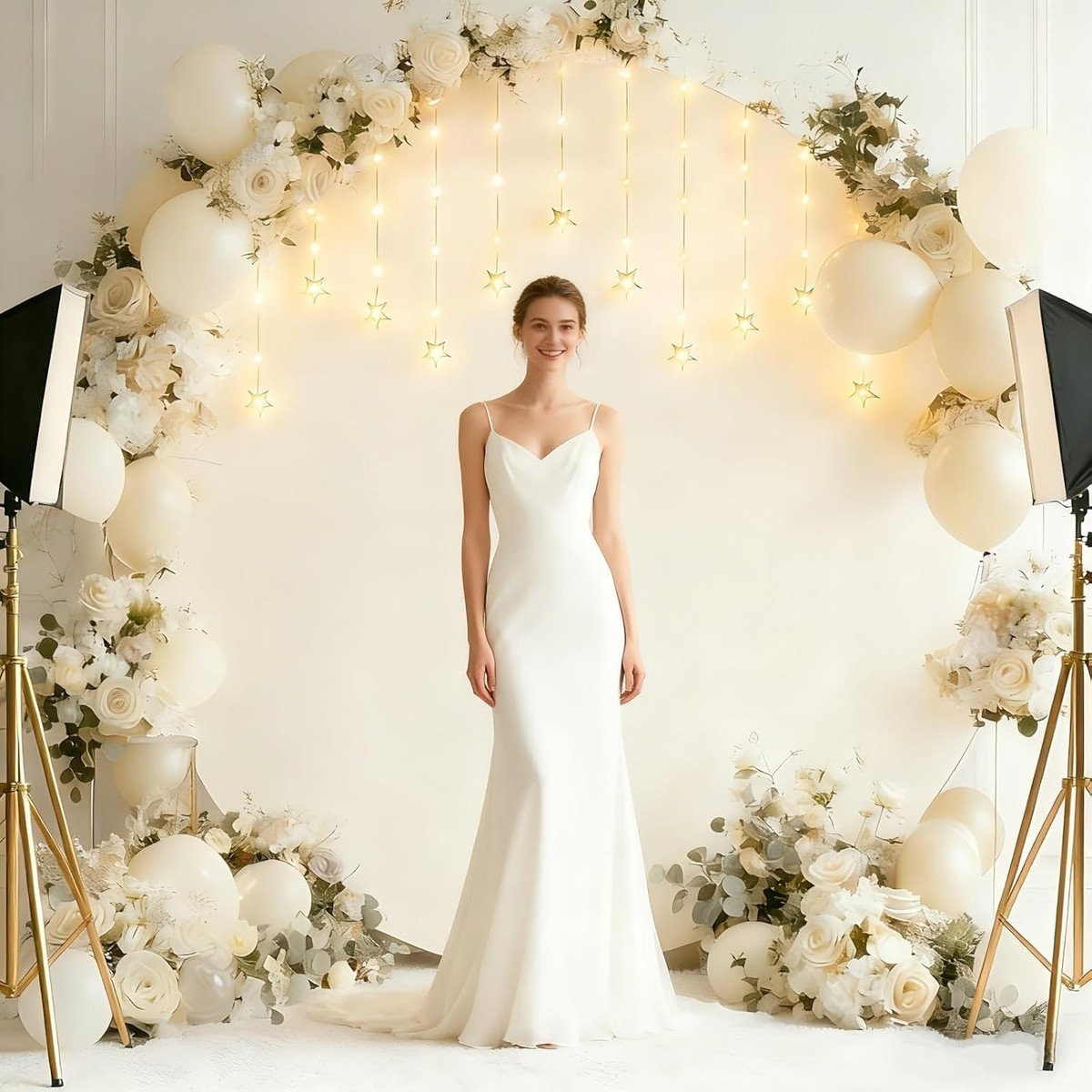 Enchanting LED Lights: Included 10ft x 24in warm white fairy lights feature transparent star pendants, adding a dreamy glow to your decor. Choose from 8 captivating lighting modes to suit the mood of your event.
