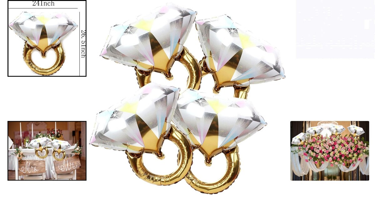 Elevate your celebrations with our stunning 4pcs Diamond Engagement Ring Mylar Balloons, designed to add an exquisite touch to any event. Measuring 26 inches, these delightful balloons are essential for creating an ambiance of elegance and joy.