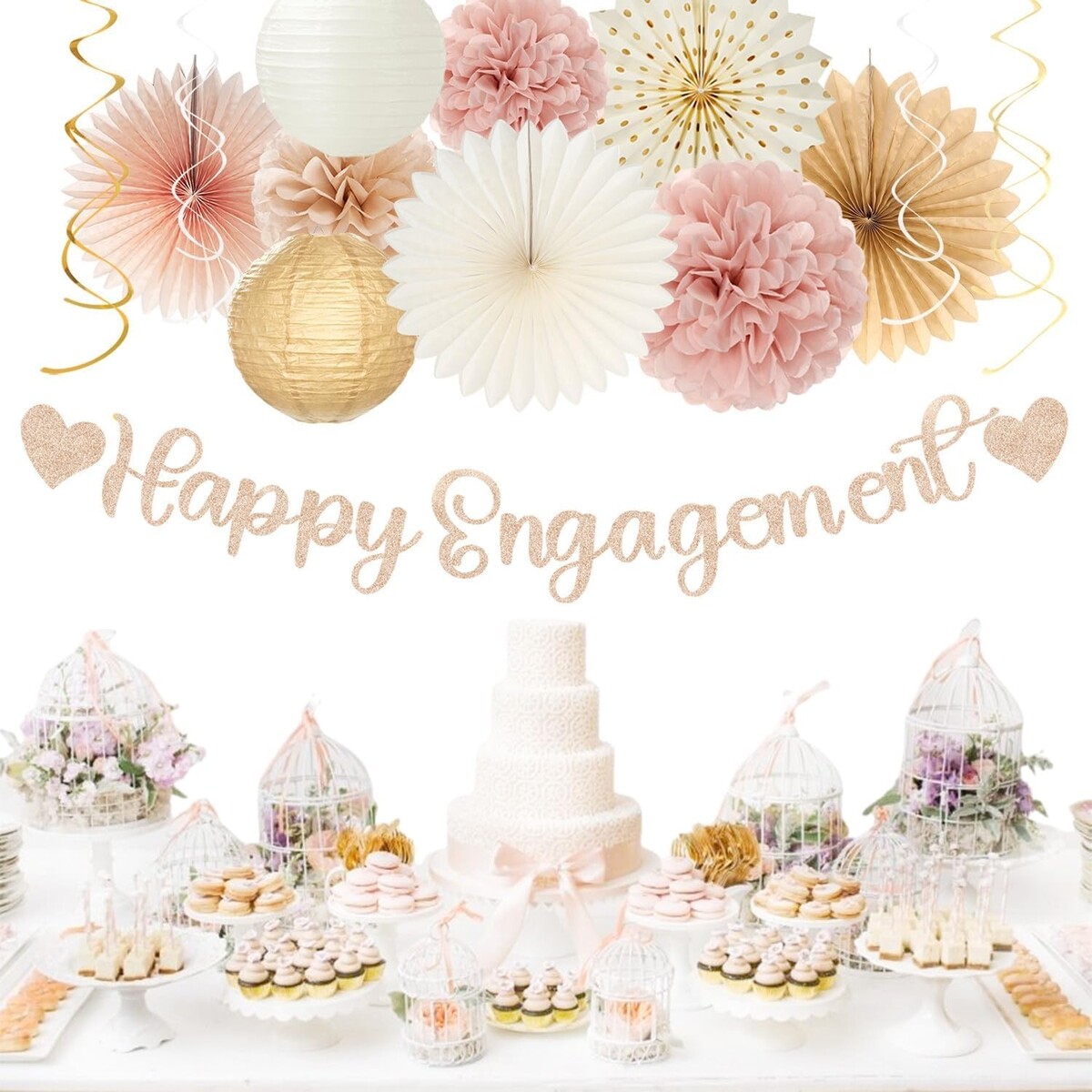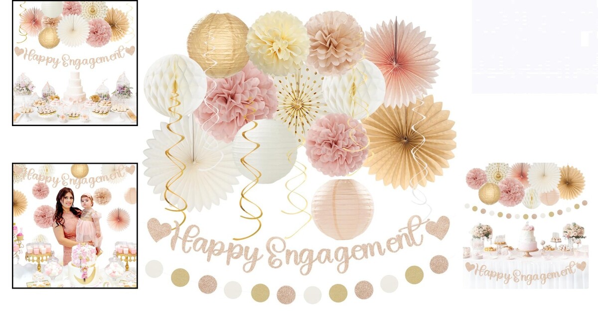 Celebrate love in style with our exquisite Engagement Party Decoration Kits featuring charming floral designs in Champagne Gold, Beige, and Blush Pink. Each set includes: