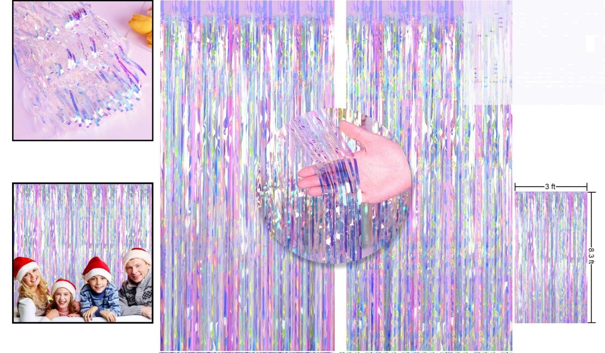 3ft x 8.3ft Shiny Colorful Metallic Tinsel Foil Fringes Curtains, Perfect for Photo Booths Celebrations