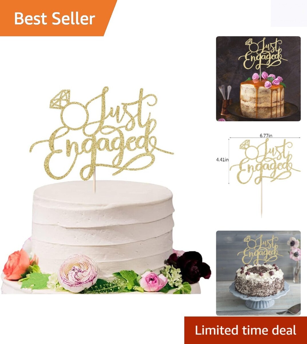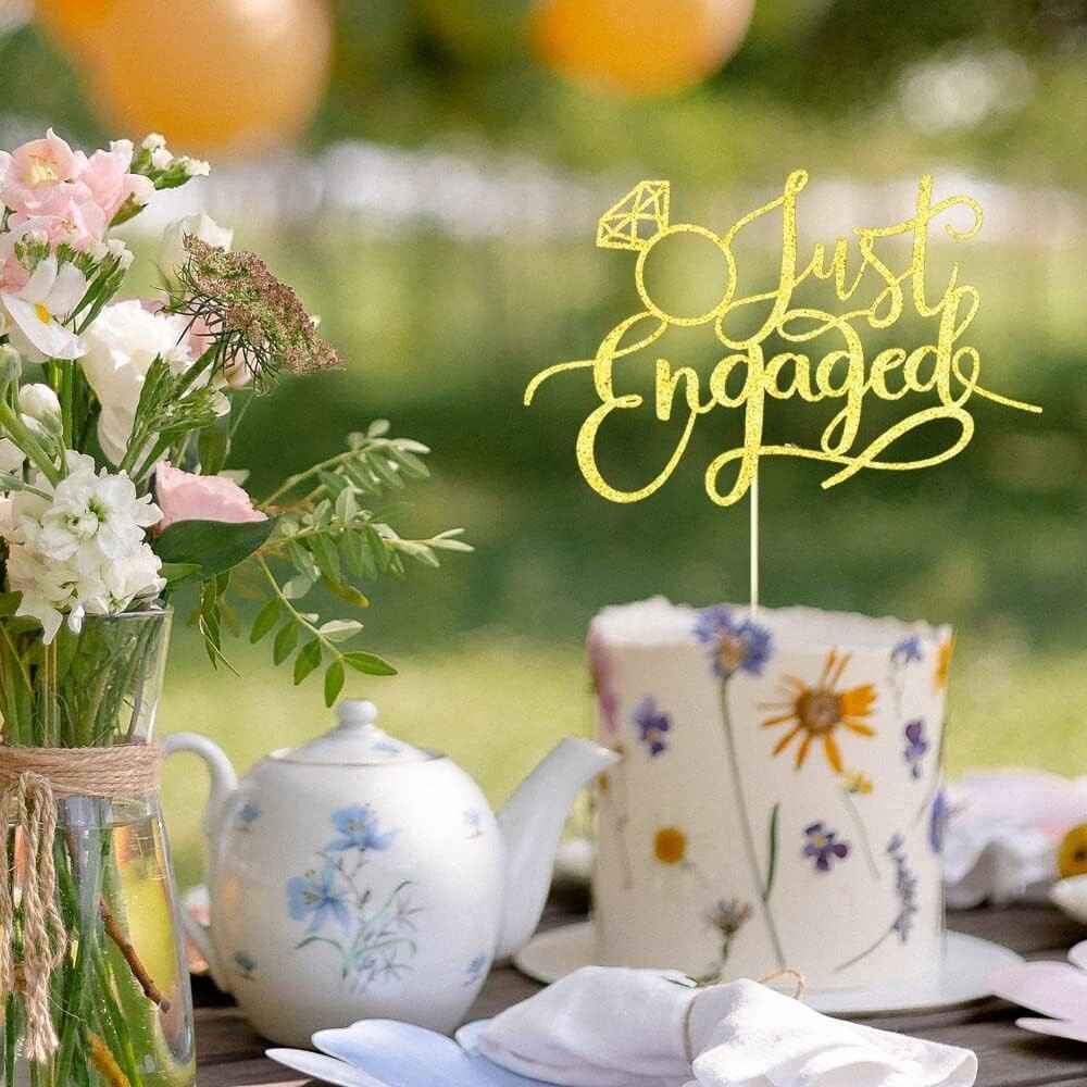 Chic Gold Cake Topper for Engagements ? No Assembly Needed, Just Place Enjoy