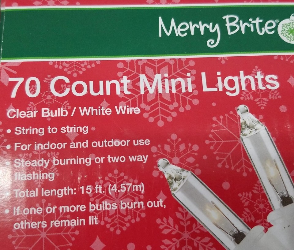 Merry Brite 70 Count Mini Lights, Clear Bulb/white Wire 15ft