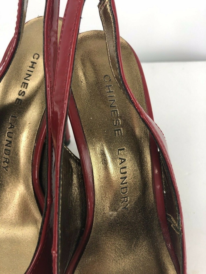 Chinese Laundry Red Patent Sling Back Peep Toe Sandal 5.5 M Shoe