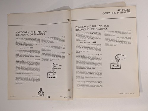 Up for sale is Atari Computer System Atari 410 Program Recorder Operator's Manual