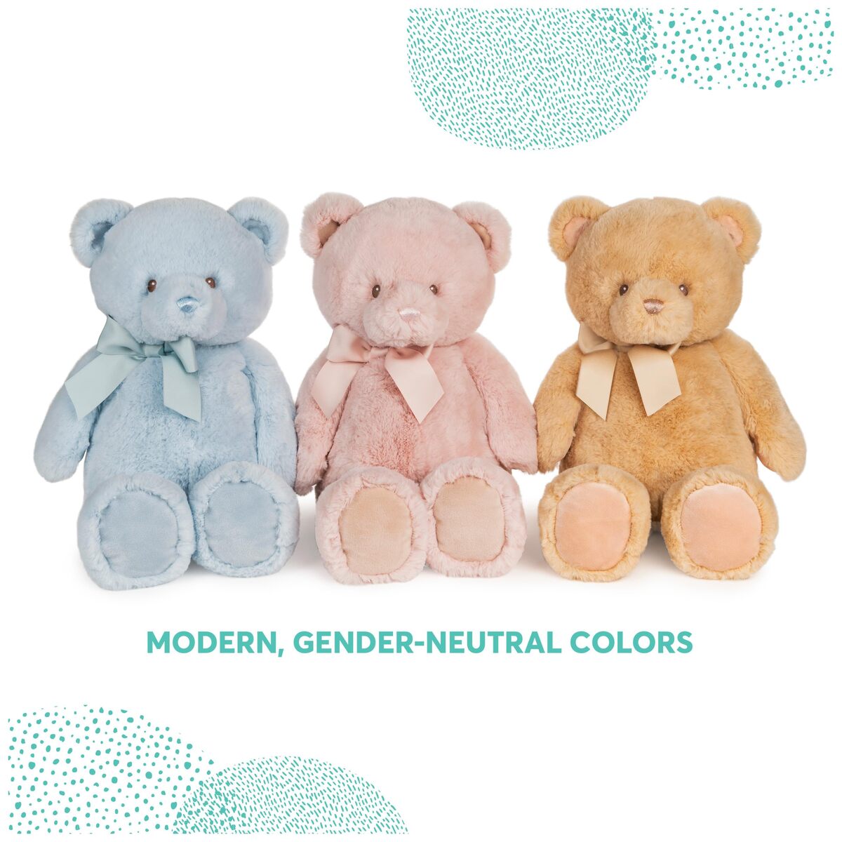 Thereas a special place in everyoneas hearts for their first teddy bear, so get the new mother or baby in your life a cuddly bear that will stand the test of time. The Baby GUND My First Friend is an adorable classic teddy bear with a luxuriously soft fur coat perfect newborn babies and toddlers. This teddyas ultra-soft plush feels like hugging a cloud, and it comes in three colors to fit every baby shower or nursery d cor: dusty rose pink, baby blue, and gender-neutral tan. Embroidered facial details render this plush bear safe for all ages, while its long satin bow provides additional tactile stimulation that babies will love. This soft and ultra-huggable companion is machine washable for easy cleaning and appropriate for ages 0 and up. At the heart of GUND is our collection of stuffed animals and plush toys, including our vast array of cuddly teddy bears, bursting with unique personalities. Each plush is made with pride from super-soft, huggable materials that stay supple through the years. From established classic favorites to brand-new modern pals, thereas a GUND teddy bear plush for everyone!
