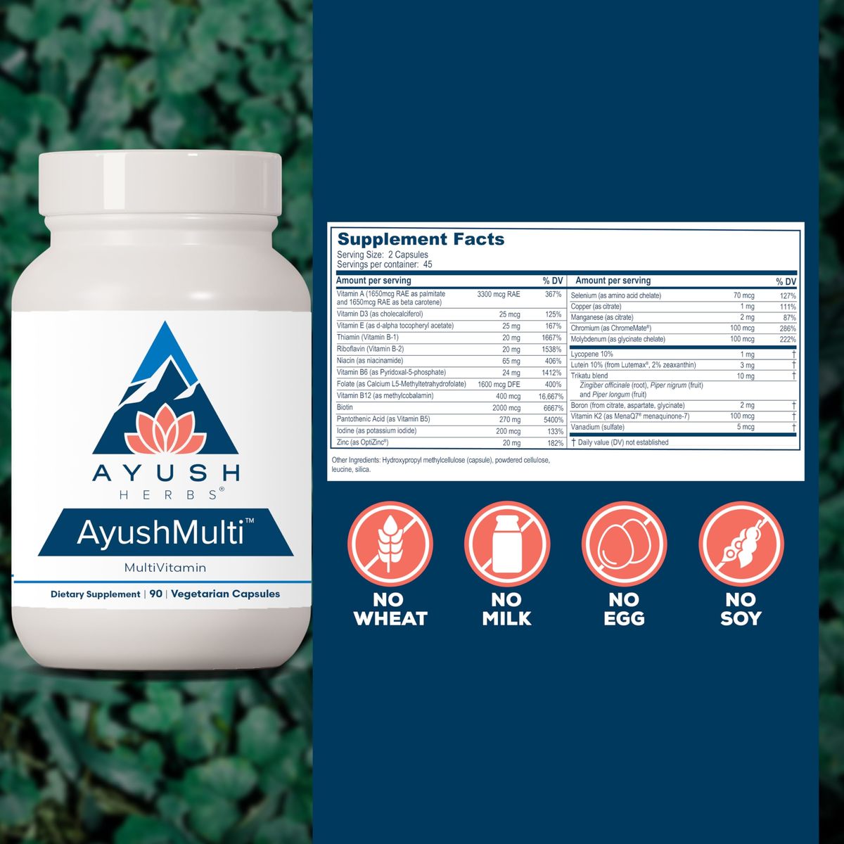 Ayush Herbs Ayush Multi Vitamin Capsules w/ Iodine, Zinc, Iron, Biotin, Antioxid