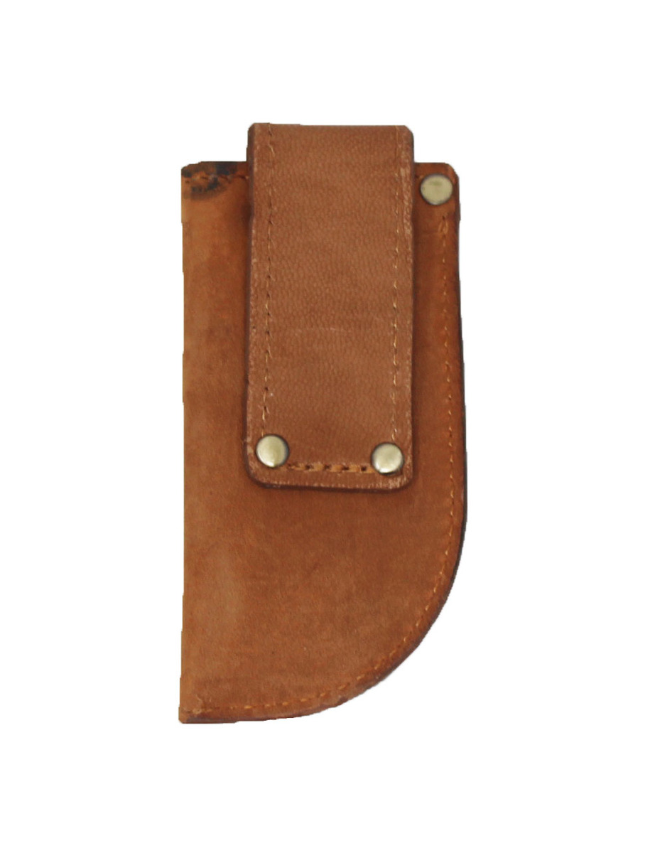 Keep your favorite knife close with this Challenger handcrafted full-grain top quality brown distressed leather belt sheath. Made to endure everyday use for years to come. This knife holder comes accented with an embroidered inlay. Sheath measures approximately 4-1/4" x 2-1/8".