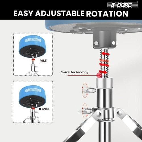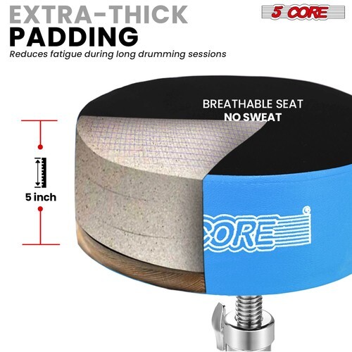 5 Inch Thick Padded Drum Throne - Experience next-level comfort with our thickest 5 inch round seat cushion. The high-density memory foam and breathable velvet cover offer luxurious comfort for long sessions. Ideal for drummers, DJs, guitarists and musicians needing a reliable drum seat stool.