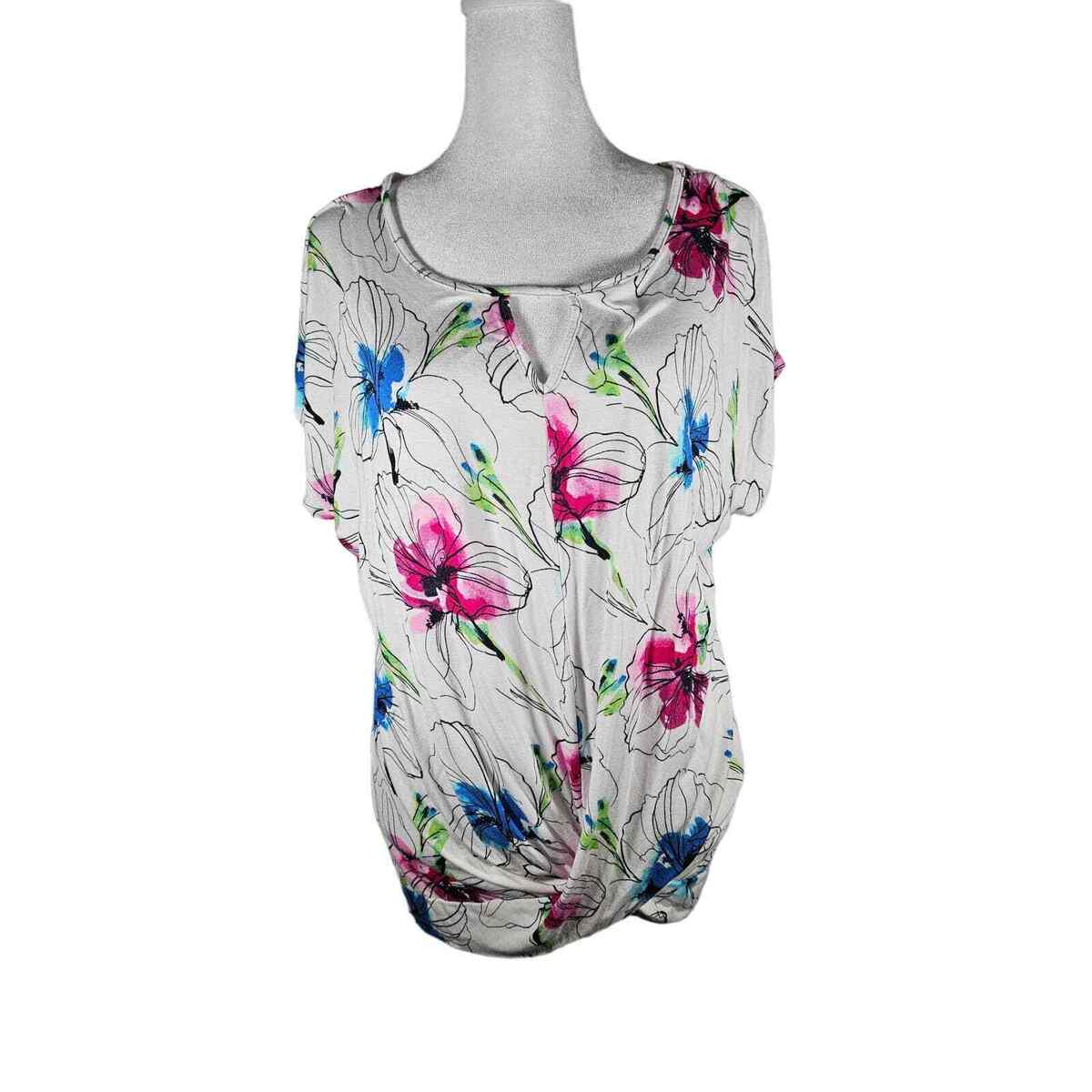 Apt 9. Women's Floral TShirt Blouse Short Sleeve Size Large Pink Blue Green