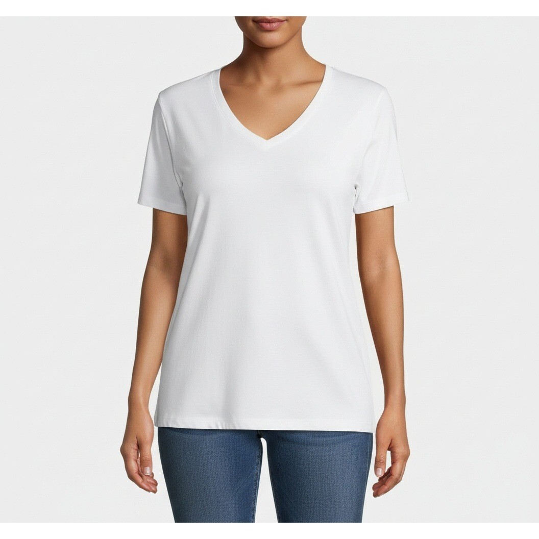 Discover your new go-to basic with this essential white V-neck t-shirt. Crafted for ultimate comfort and versatility, this top drapes beautifully, offering a flattering silhouette that moves with you. Its clean design makes it a perfect canvas for layering or a chic standalone piece. Imagine this tee paired with your favorite jeans for a relaxed weekend outing, or dressed up with a blazer for a smart-casual office look.