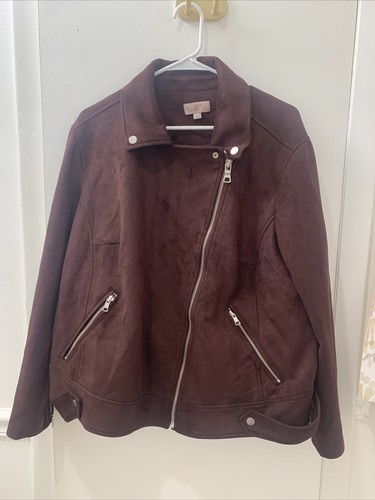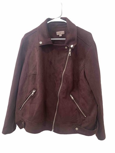 Loft Asymmetrical Full Zip Moto Jacket Faux Suede Soft Brown Plus Size 18 Women