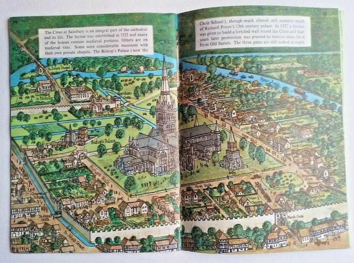History at Salisbury Cathedral illustrated by Rena Gardiner with text by Canon R S Dawson. The book is copyright of the Dean and Chapter 1967, new and revised edition 1980. Vintage UK History / Guide Book. Softcover, 46 pages.