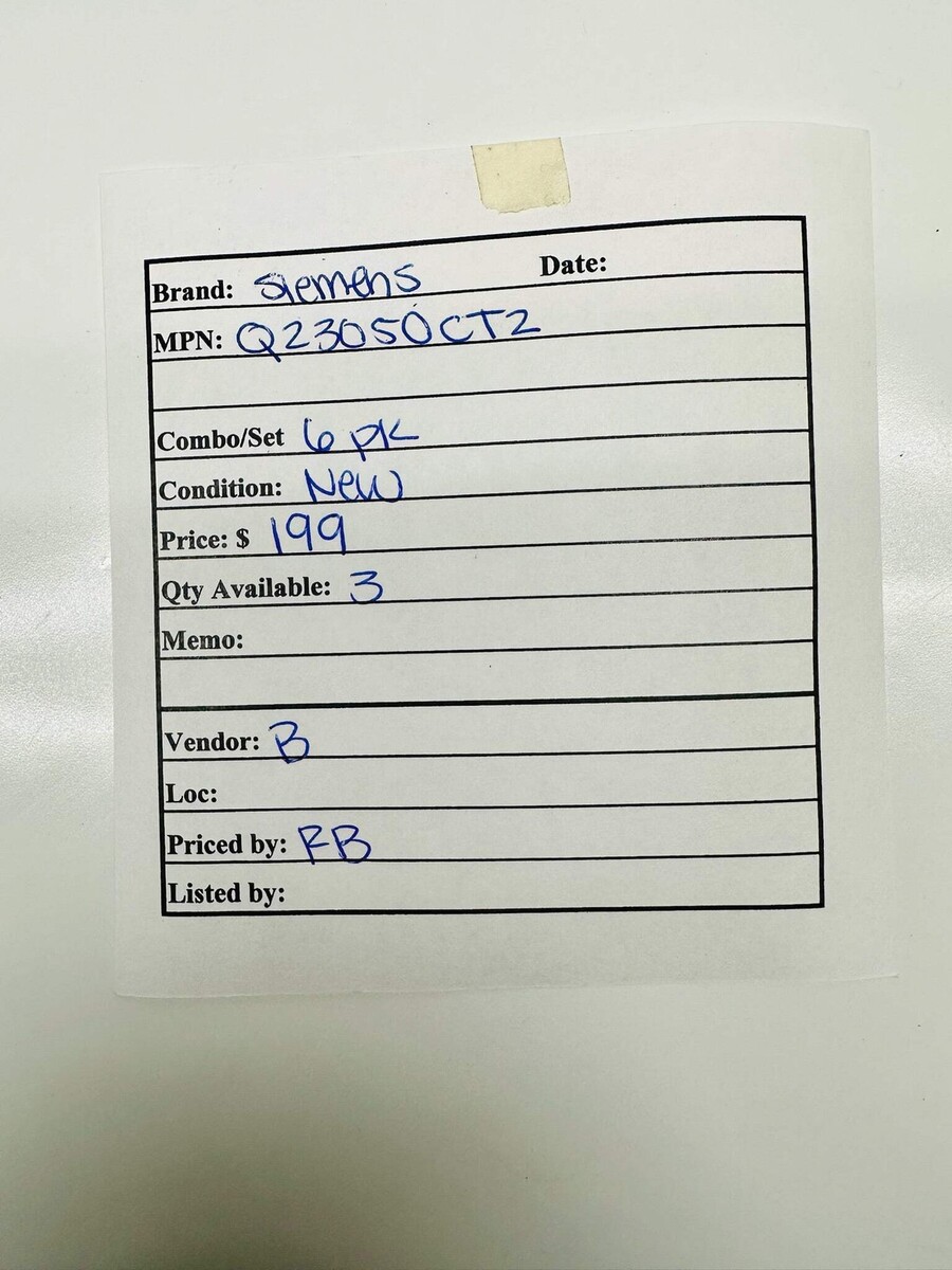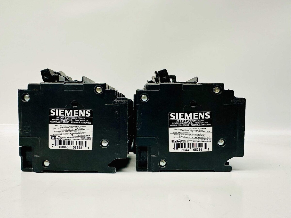 6 Pk Siemens Q23050CT2 Quadplex 30/50A 120/240V Circuit Breaker New Siemens Q23050CT2 is a quadplex molded-case circuit breaker designed for use in low-voltage electrical distribution panels. It combines two double-pole breakers in one unit to provide overcurrent protection for multiple 120/240 V circuits in residential and light commercial load centers. The breaker features thermal-magnetic trip elements and a common trip mechanism, and installs as a plug-in breaker in compatible Siemens panels to protect wiring and devices from overloads and short circuits. Listed by: Renee (Sales Team) ?Every action you take is a vote for the type of person you wish to become.? James Clear (A positive moment brought to you by Help Resale) About Us Welcome to Help Resale, your go-to consignment shop where value meets quality. At Help Resale, we're dedicated to providing you with an exceptional shopping experience, whether you're looking to find the best deals or consign your items. Need to buy a product, but don't see it in our store? Please feel free to reach out to us and we will help you find it! Help Resale 7200 Fair Oaks Blvd Suite 120 Carmichael CA 95608 Business Hours: Monday-Friday: 9:00 am to 5:00 pm (PST) All product and company names are trademarks TM or registered trademarks of their respective holders. Use of them does not imply any affiliation with or endorsement by them.