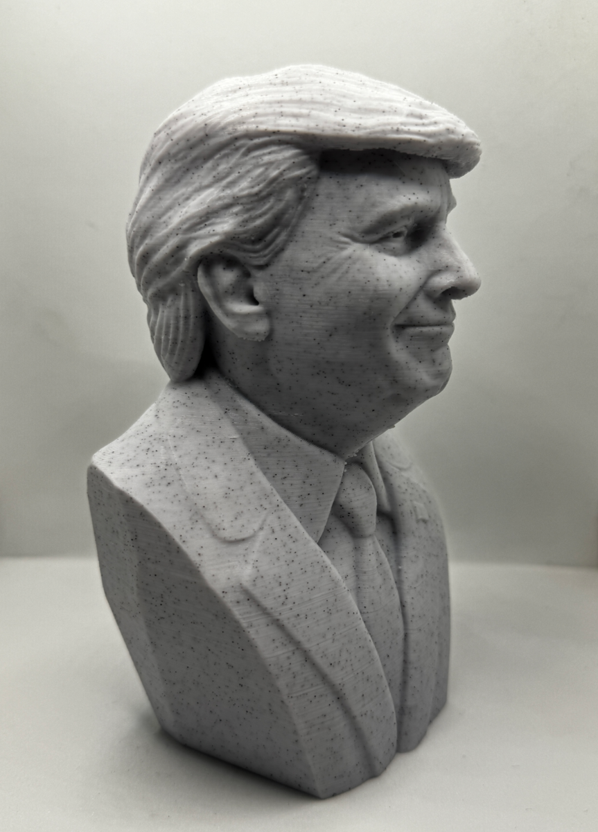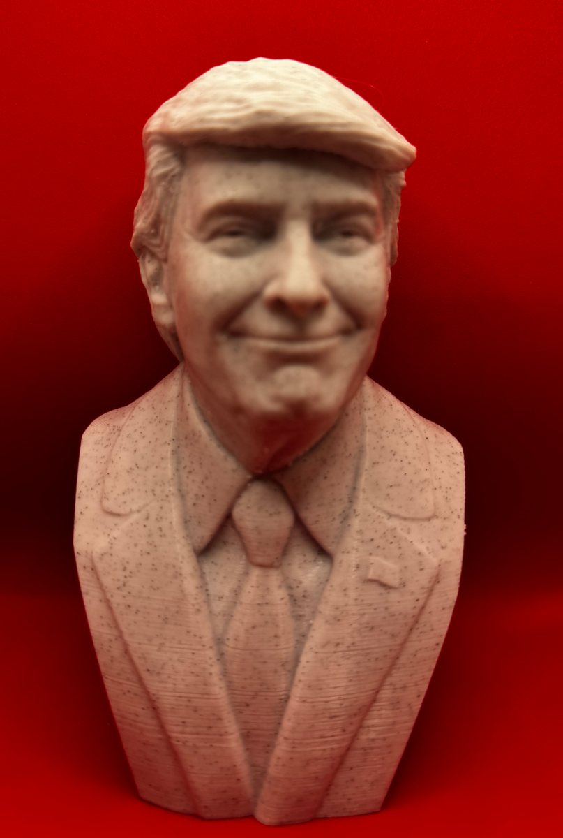 Crafted from PLA material, this piece highlights a dedication to American craftsmanship and political sentiment. It is not signed, emphasizing its representation of the President's legacy and the MAGA movement. Proudly made in the United States, this bust is a tangible piece of the recent political landscape.
