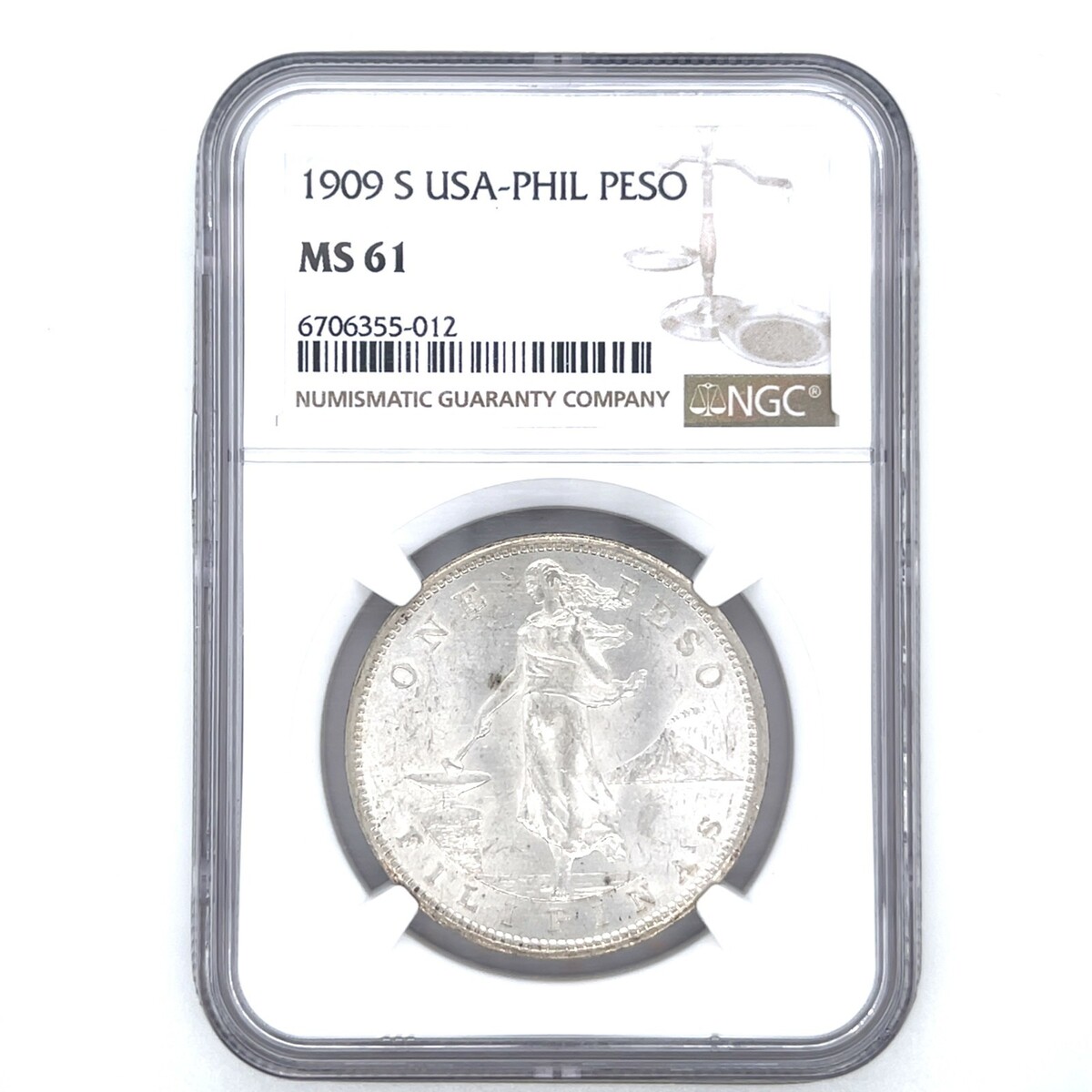 1909-S USA-PHIL Philippines Silver Peso NGC MS61 Certified Lustrous Silver Coin
