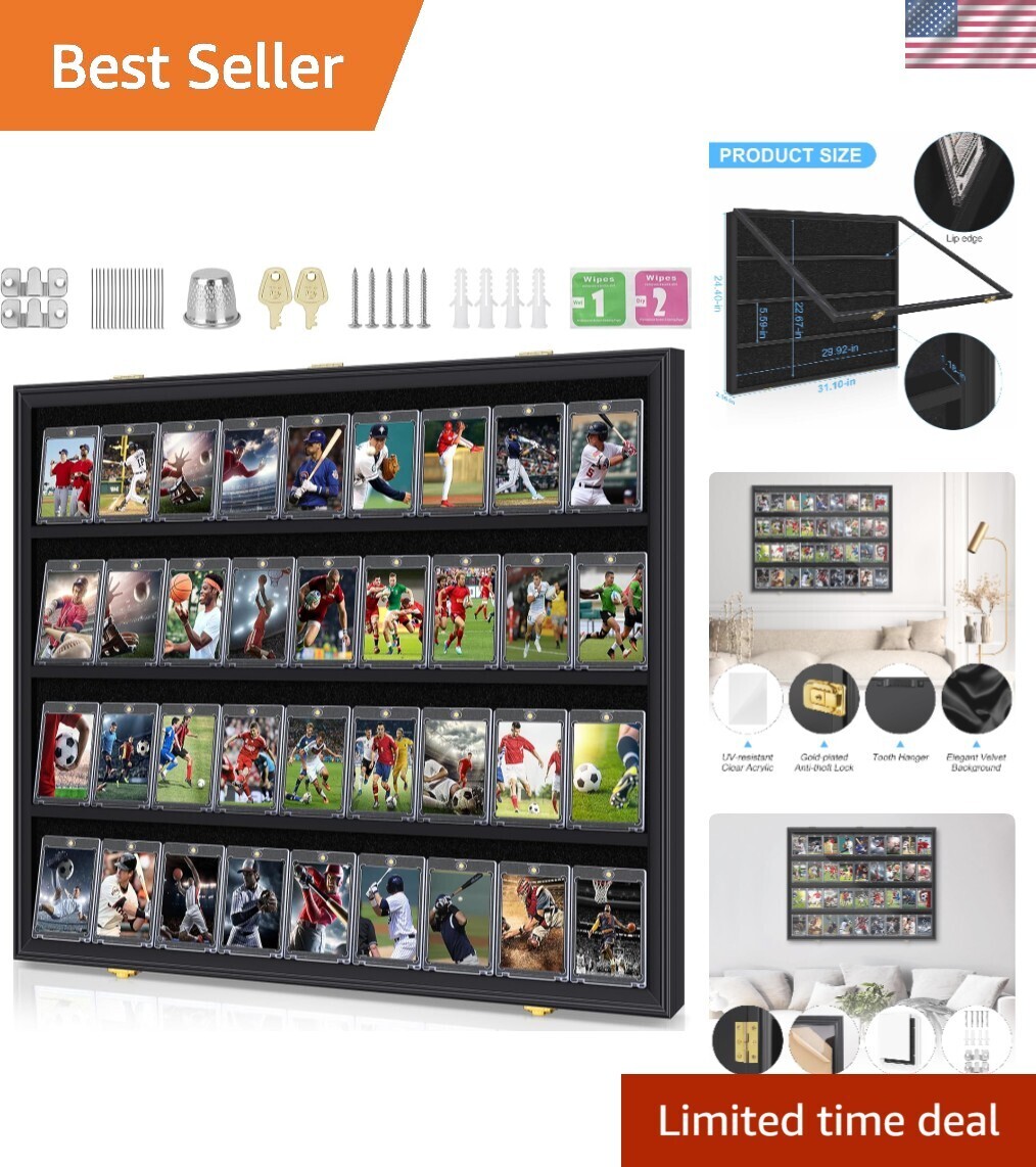 Baseball Card Display Case, 36 Graded Card Display Frame Lockable, Trading Ca...