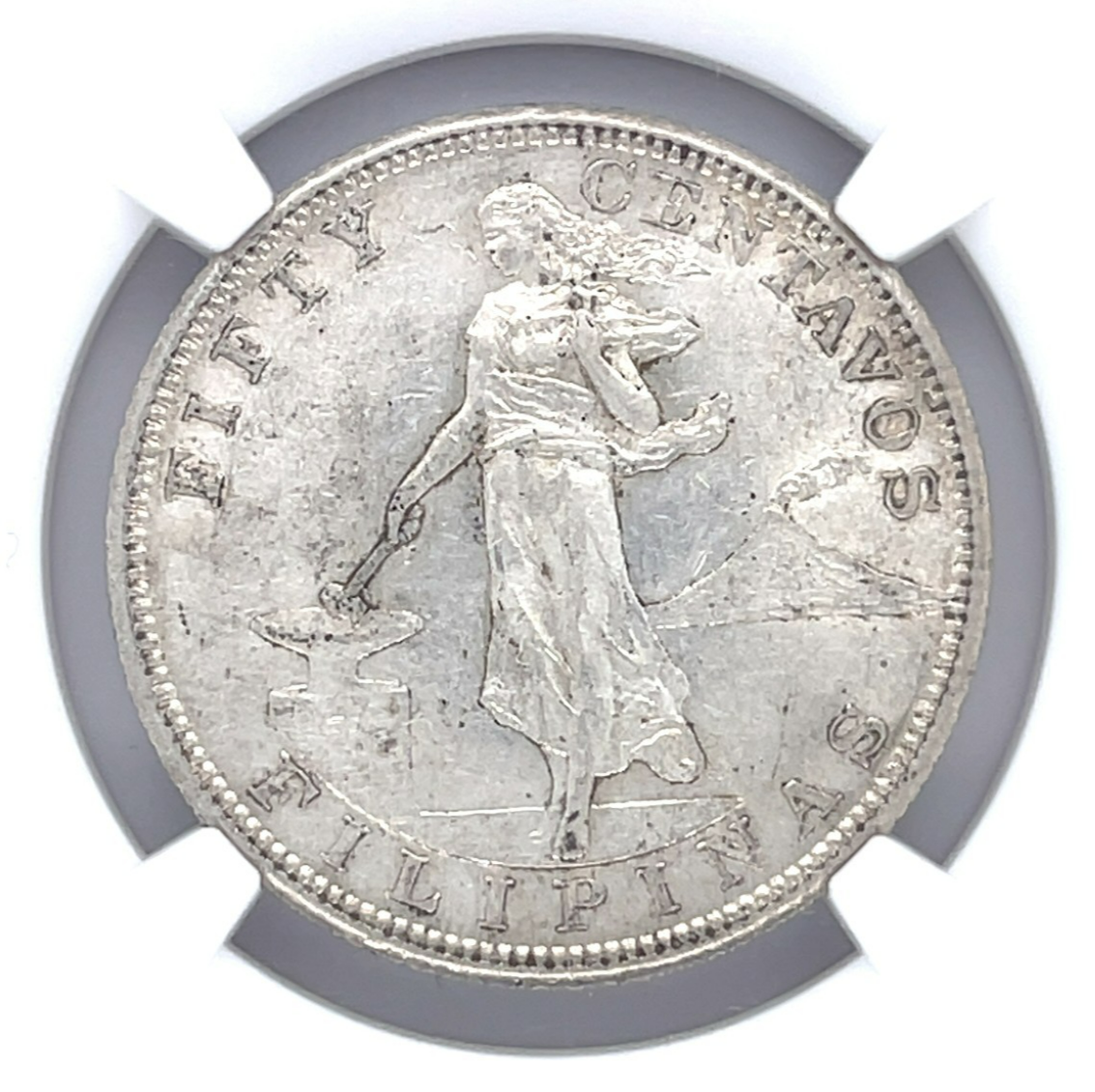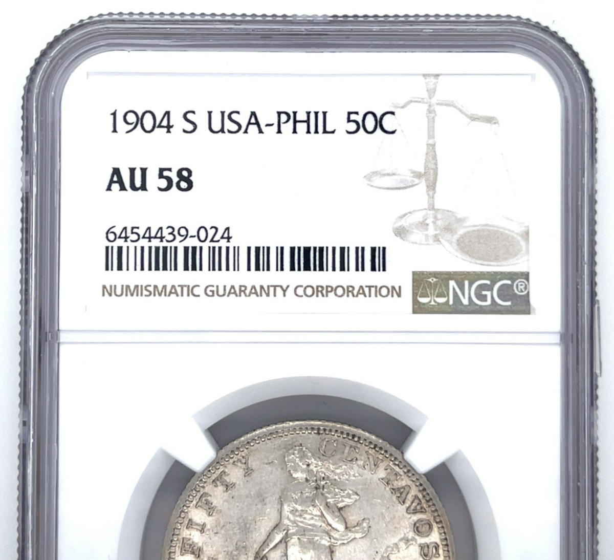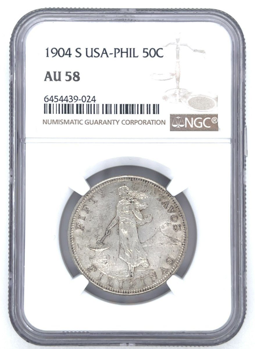 1904-S USA-PHIL Philippines Silver 50 Centavos NGC AU58 Certified Coin
