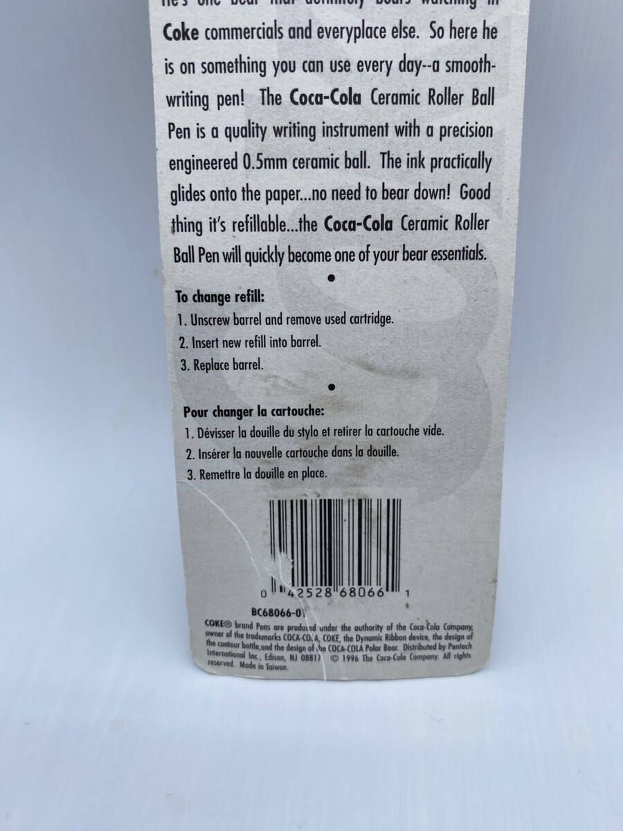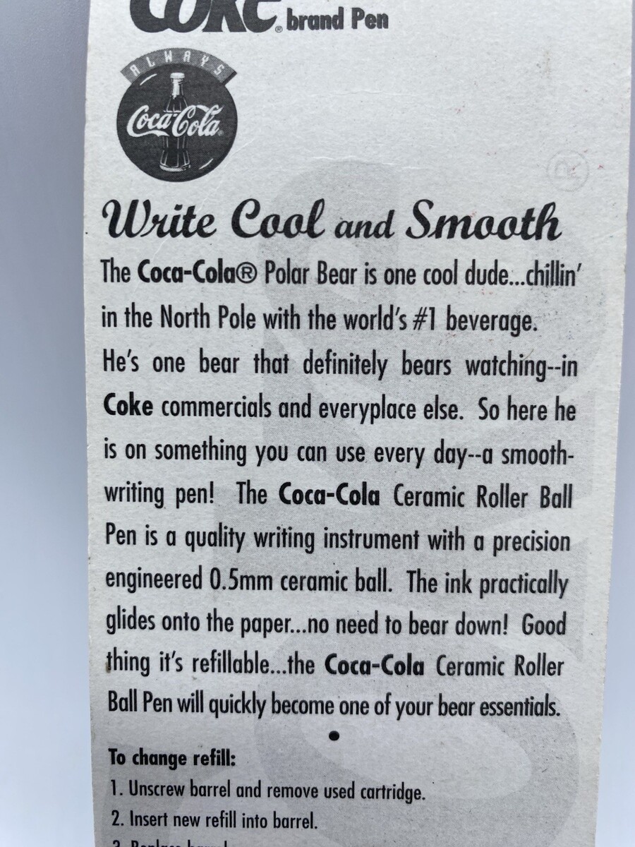 Vintage 1996 Coca Cola POLAR BEAR Ceramic Roller Ball Pen - Coke Collectible NOS Bs318