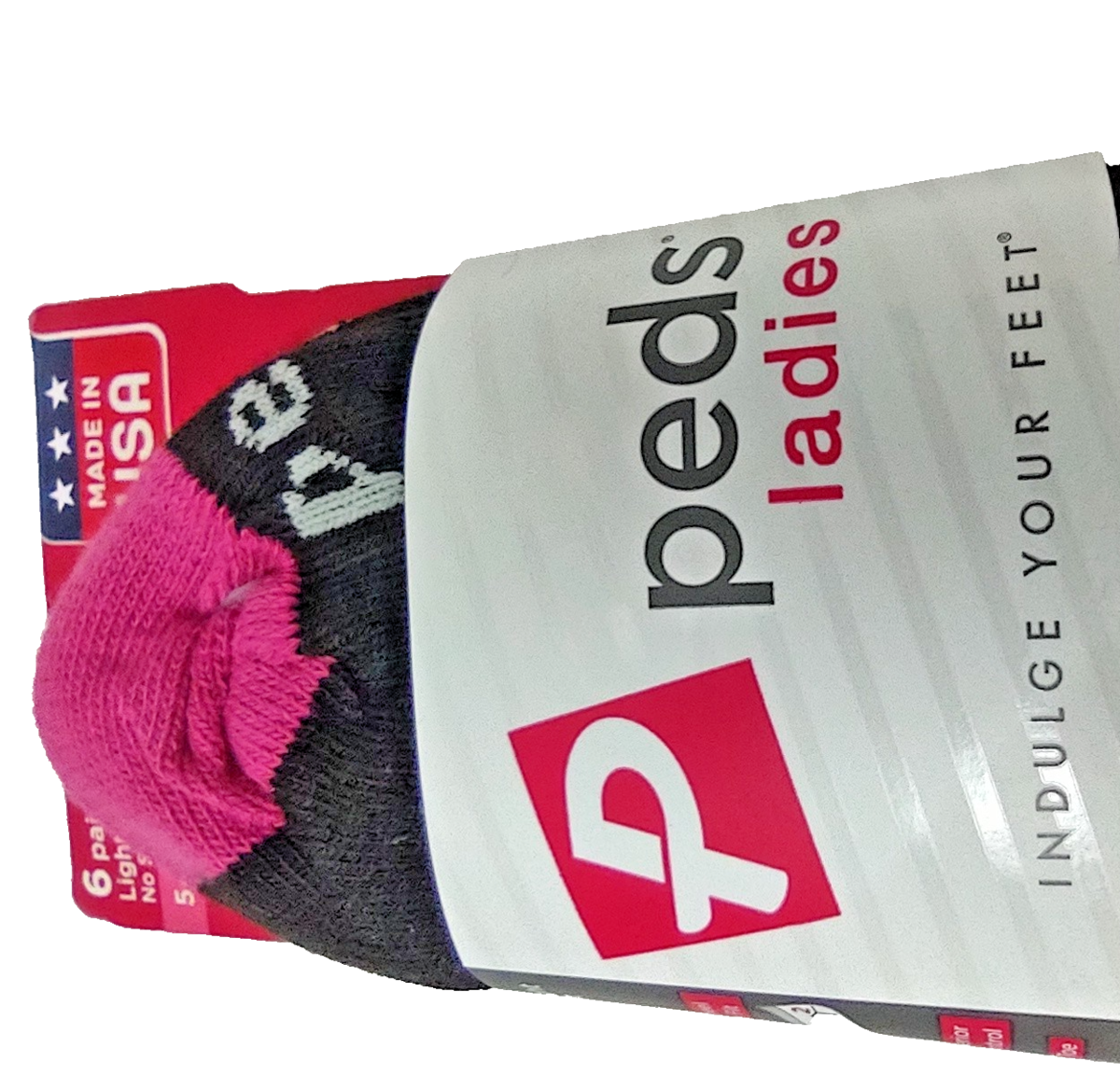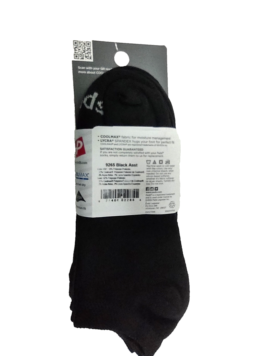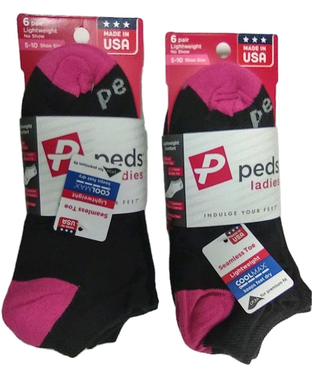 Peds Ladies Women's NO SHOW Socks Lightweight COOL MAX LYCRA SEAMLESS TOE Size 5-10 Black-Asst