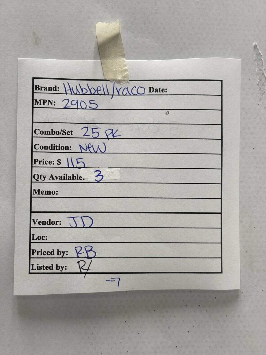 25 Pk Hubbell Raco 2905 1-Inch Rigid/IMC Conduit Locknut Steel Zinc Plate New The Hubbell Raco 2905 is a 1-inch rigid and IMC conduit locknut designed to secure threaded conduit to boxes and enclosures. It is made from steel with a zinc plating that offers corrosion resistance and long-lasting performance in electrical installations. This locknut threads onto conduit and holds fittings tightly in place to maintain grounding continuity and mechanical integrity. The compact design allows easy hand and wrench installation in tight spaces. Listed by: Richard (Sales Team) ?Learn to dance with the changes that lie ahead... then prepare to conquer the challenges that follow.? RRW (A positive moment brought to you by Help Resale) About Us Welcome to Help Resale, your go-to consignment shop where value meets quality. At Help Resale, we're dedicated to providing you with an exceptional shopping experience, whether you're looking to find the best deals or consign your items. Need to buy a product, but don't see it in our store? Please feel free to reach out to us and we will help you find it! Help Resale 7200 Fair Oaks Blvd Suite 120 Carmichael CA 95608 Business Hours: Monday-Friday: 9:00 am to 5:00 pm (PST) All product and company names are trademarks TM or registered trademarks of their respective holders. Use of them does not imply any affiliation with or endorsement by them.