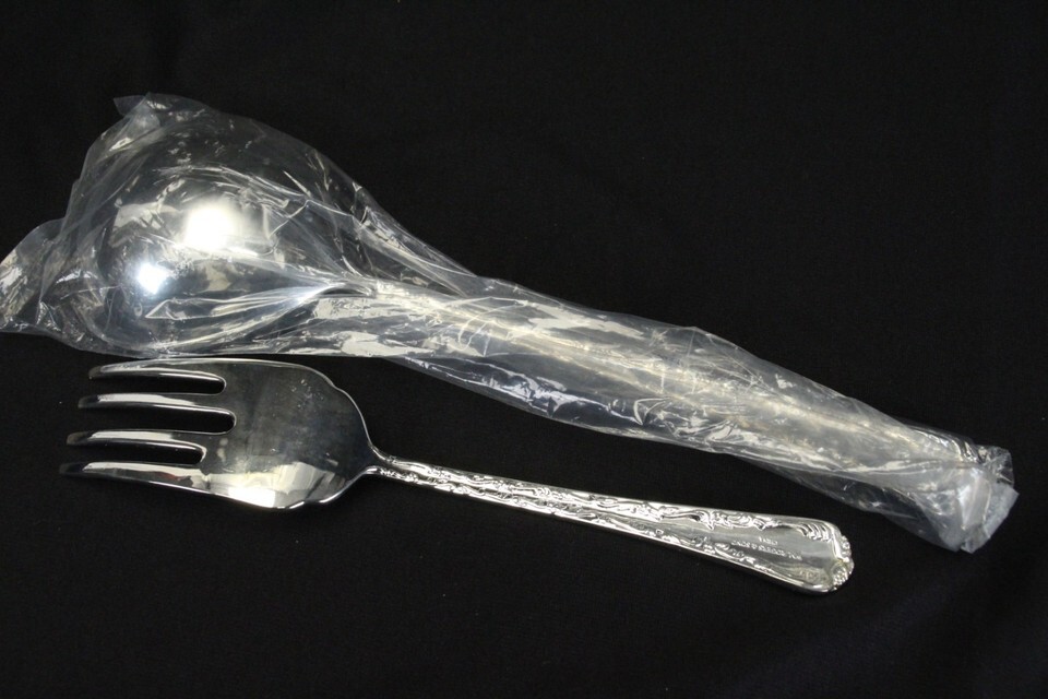 Wm Rogers Son Enchanted Rose Serving Spoon and Cold Meat Fork Silverplate NEW