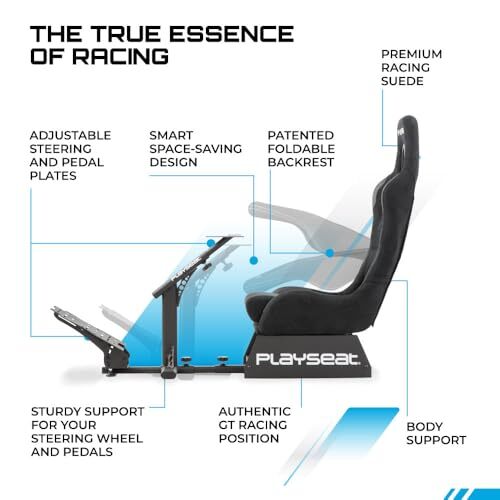 Bullet point: MASTER THE TRACK Embrace the realism of the gt-stance racing cockpit as it brings you closer to the road. You will feel like a true race car driver, maintaining precision and control in tight corners and high-speed straightaways. The well-padded backrest is thoughtfully designed with a gentle, yet firm support, to sustain a healthy posture throughout racing sessions.