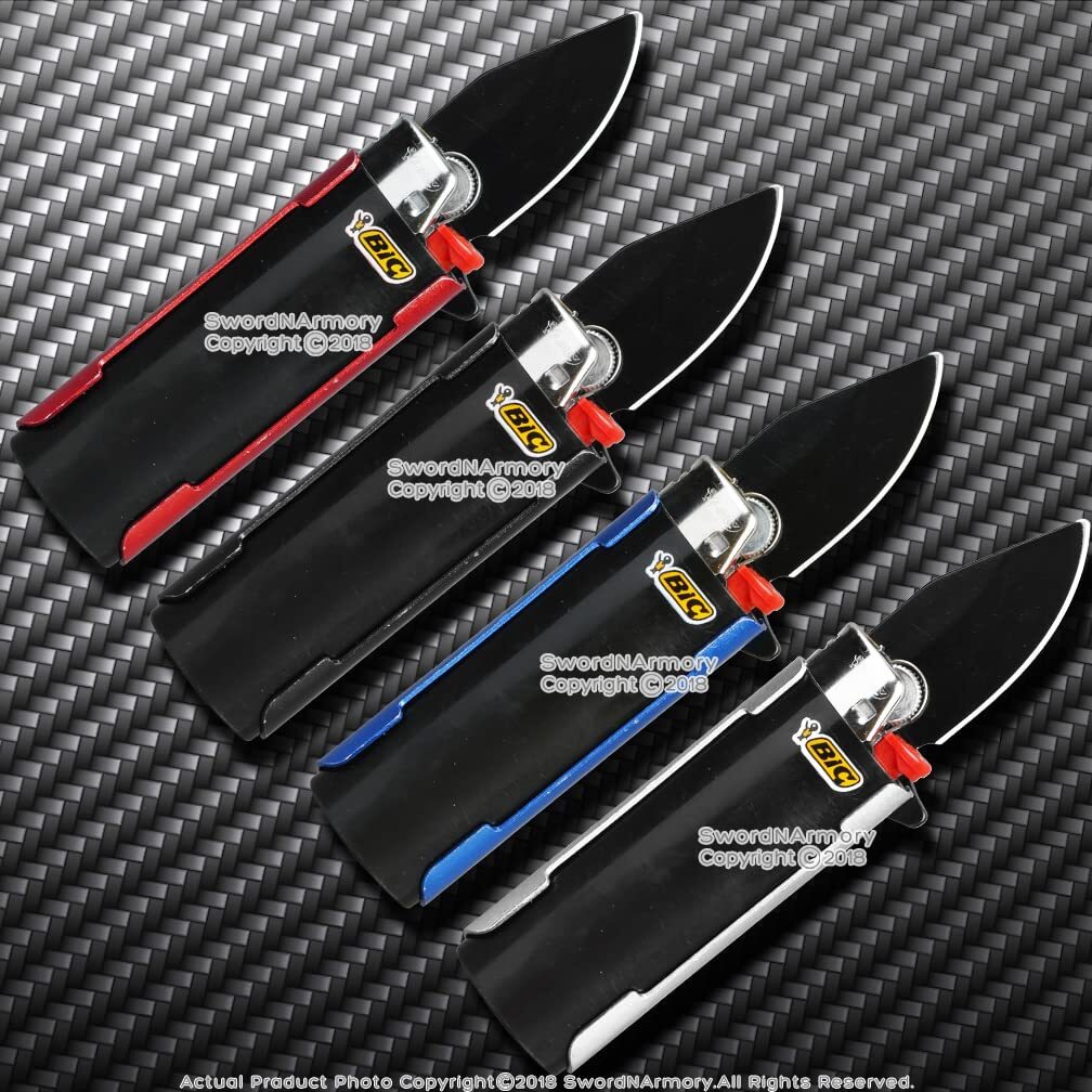 [Dimensions] Overall Length: 4.5? Blade Length: 1.98? Folded Length: 2.5? [Blade] Stainless steel [Handle] Made of Aluminum, and is able to both hold a standard-size lighter and clip to a belt [Colors] Choose one to match your style, from silver to red to blue to black to green [Quality] All of our products are made of the finest materials, and are packaged securely in our own warehouse