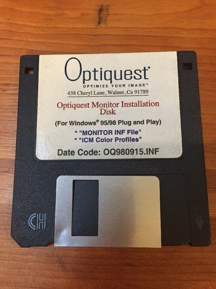 Vintage Optiquest Monitor Installation Floppy Disk Software Windows 95/98 1998