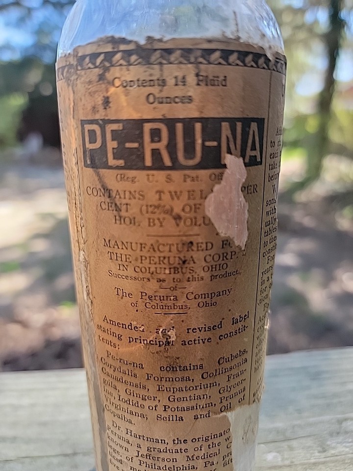 Vintage PE-RU-NA Elixer Bottle W/ Partial and 10 similar items
