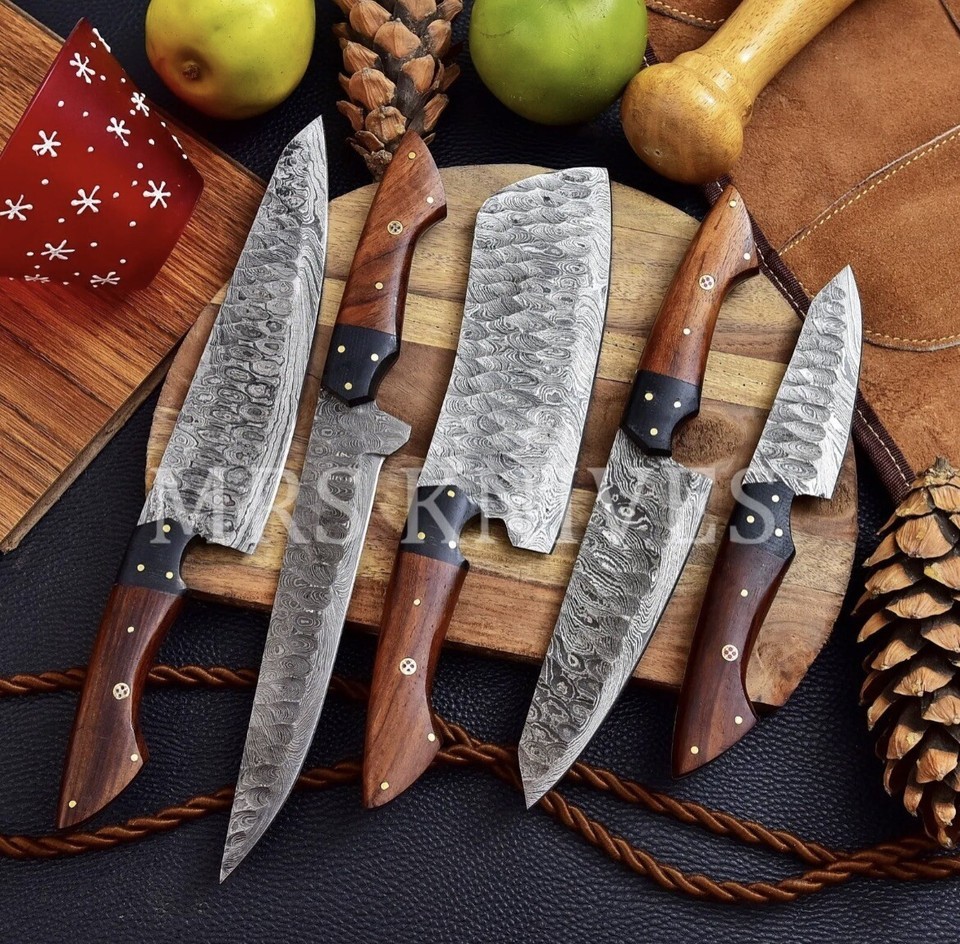Custom Made Damascus Steel Chef Knife Set and 38 similar items