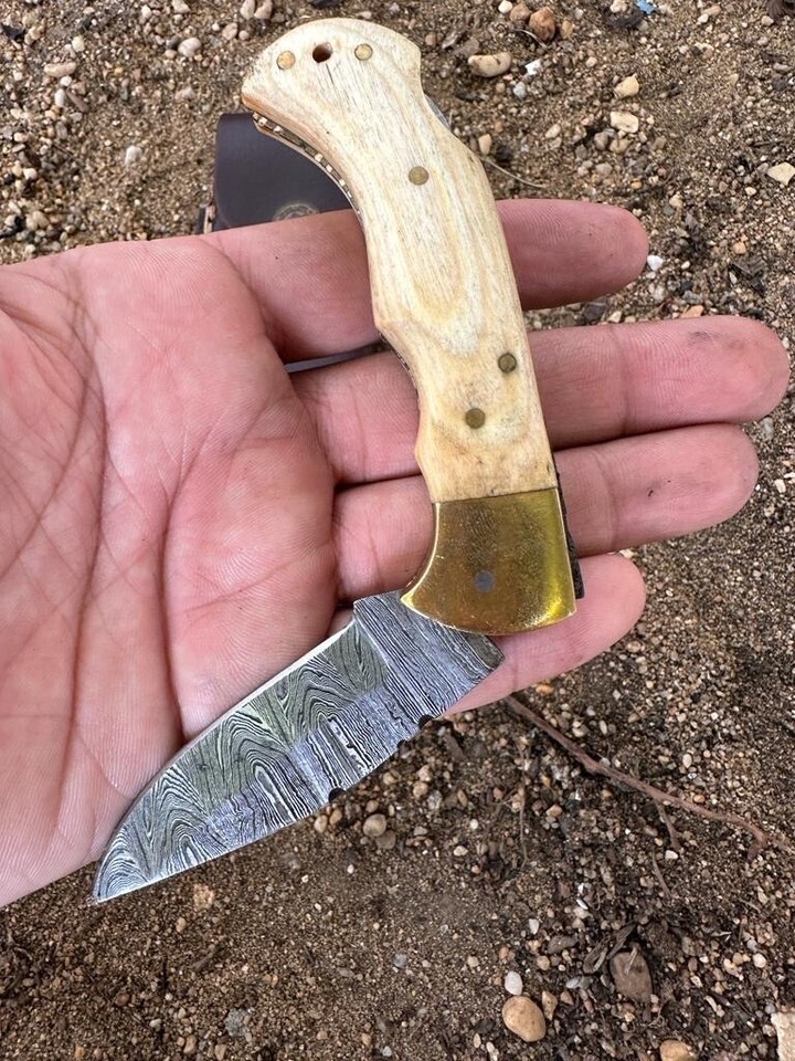 This pocket knife is a must-have for anyone who loves the outdoors. The blade material is made of high-quality Damascus steel and has a straight edge with a blade length of 2.75 inches. The knife is designed with a brown color handle made of wood and has a closed length of 3 inches, making it easy to carry around.