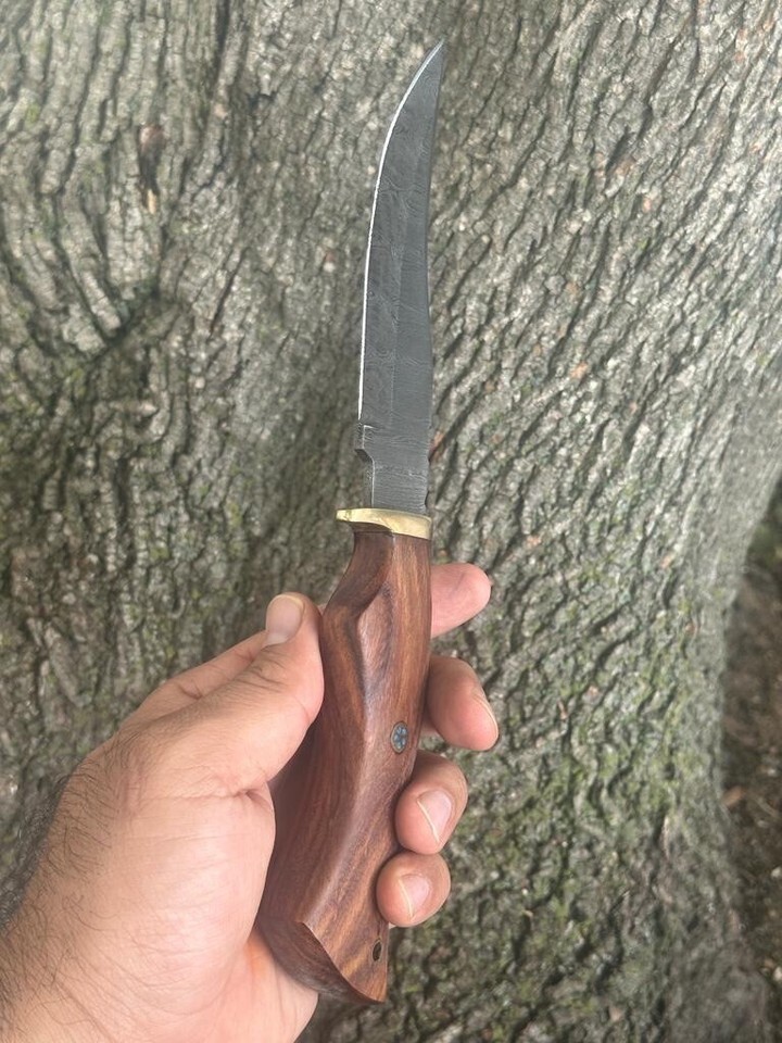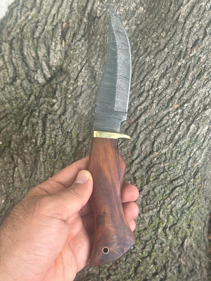 Vintage CUSTOM HANDMADE DAMASCUS STEEL HUNTING SKINNING KNIFE WOOD HANDLE 212