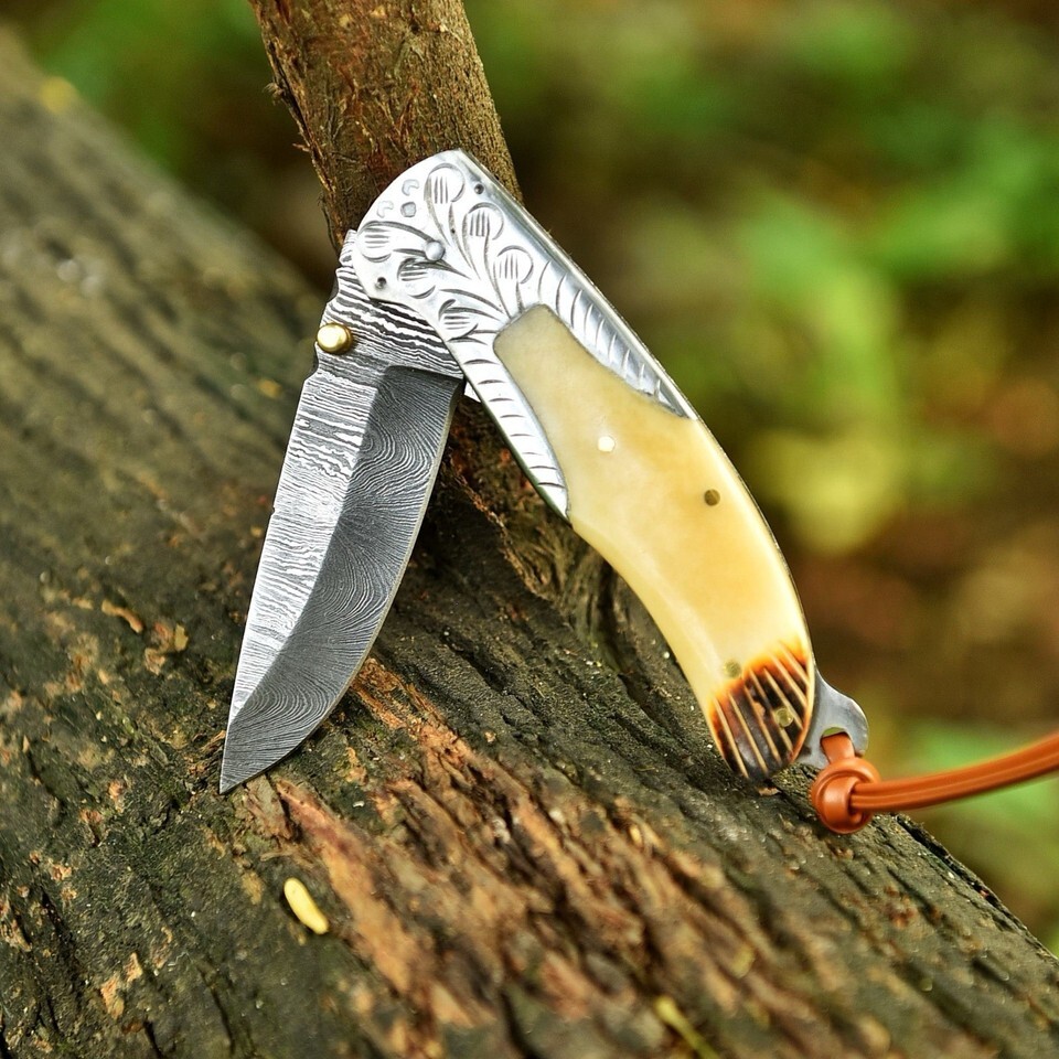 CUSTOM HAND FORGED DAMASCUS STEEL POCKET KNIFE