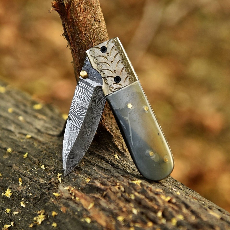 CUSTOM HAND FORGED DAMASCUS STEEL POCKET KNIFE