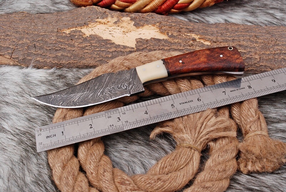 Custom Handmade Forged Damascus Steel HUNTING Knife W/ Wood & Camel bone handle