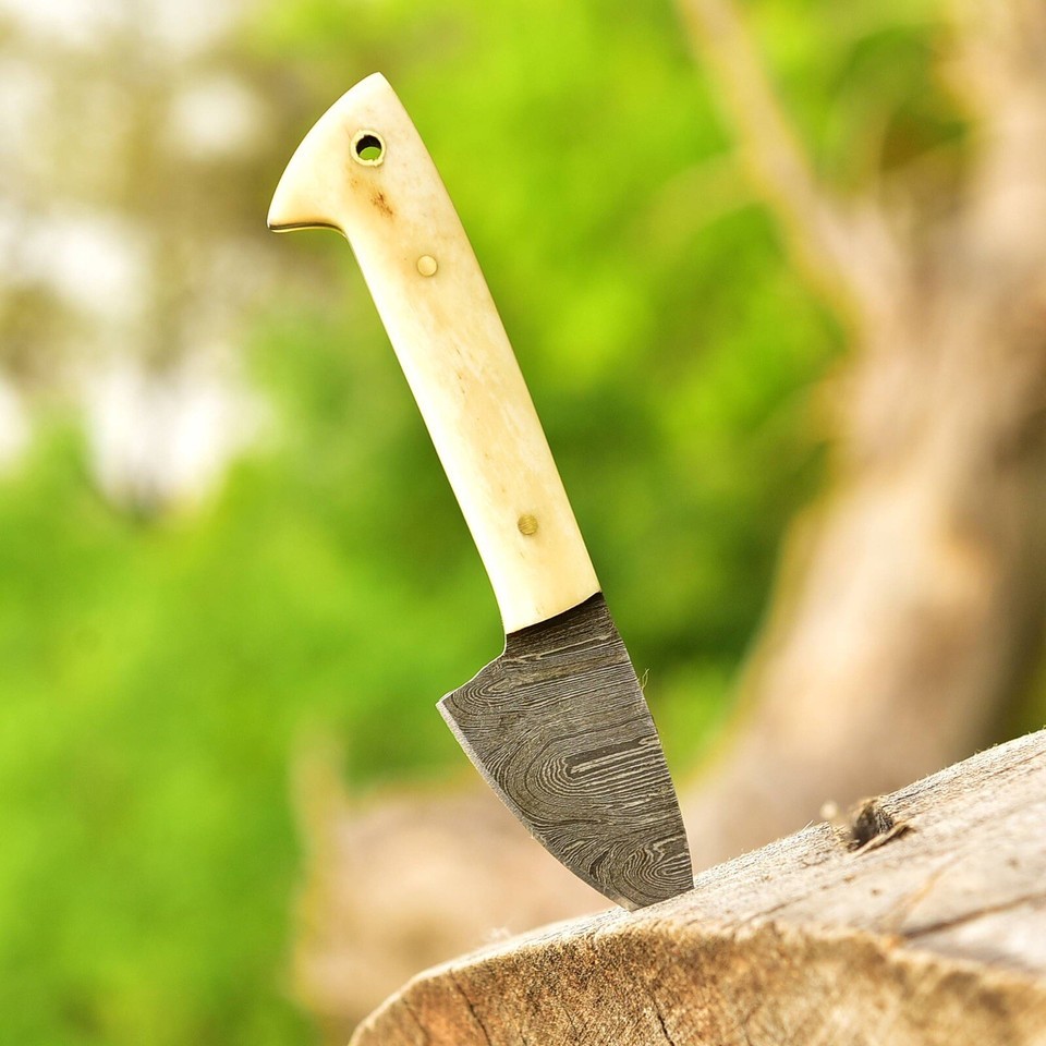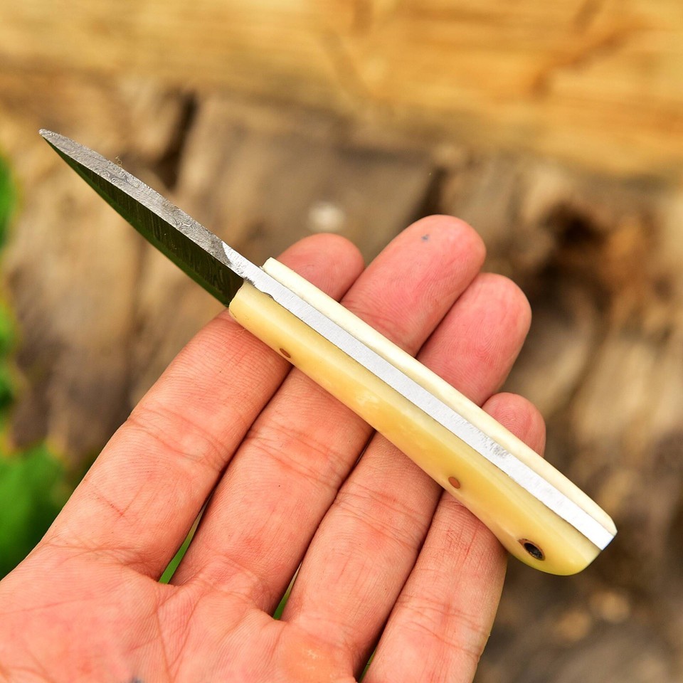 Custom Damascus Steel Buck Hunting Skinning miniature Survival Knife Pocket size