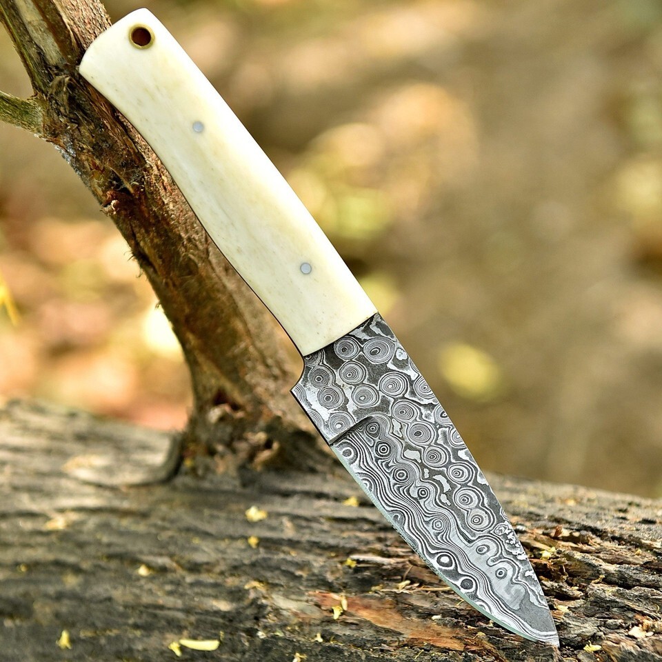 Custom Handmade Rain Damascus Steel Hunting Fix Blade Knife Camel Bone Handle