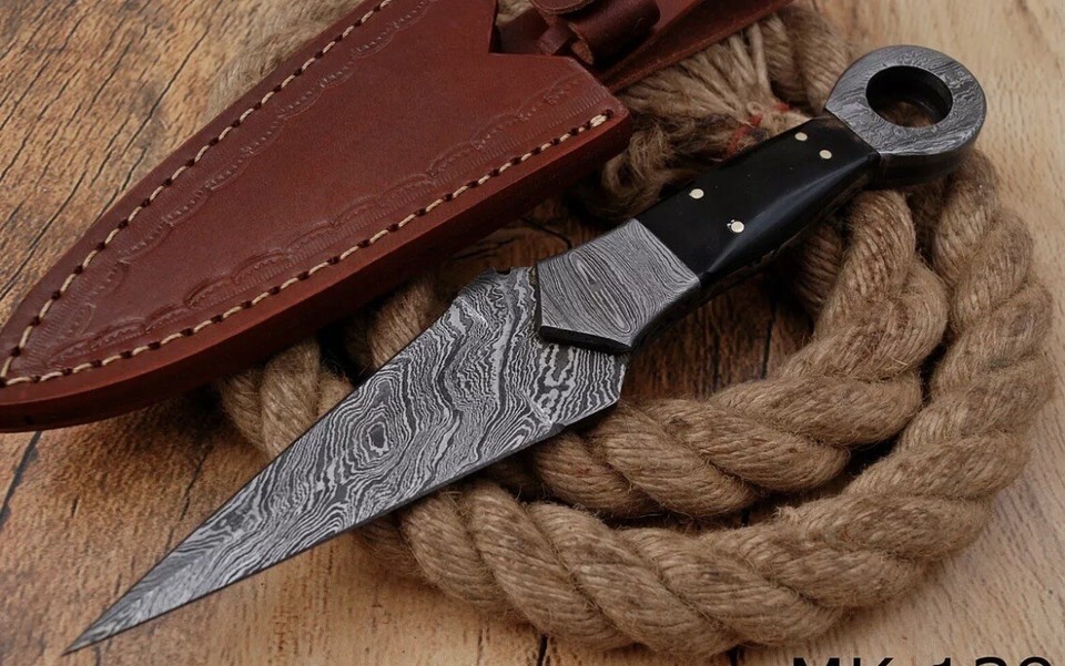 Blade of this knife has a nice file work and is made of 512 layers of 4340 stainless steel and 1075 high carbon steel and hardness 55-58 HRC .