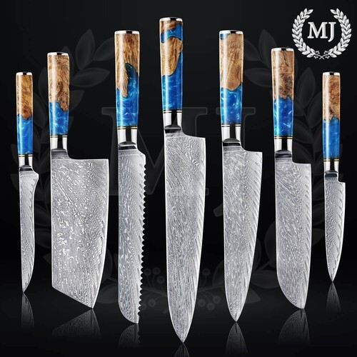 CUSTOM MADE HAND FORGED DAMASCUS STEEL CHEF KITCHEN KNIFE SET