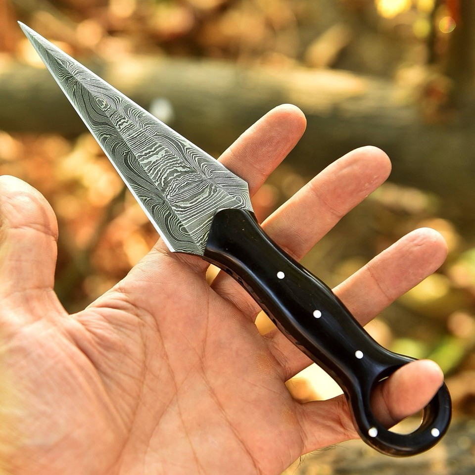 AUTHENTIC Double-Edge Damascus Needle Blade Dagger boot Knife EDC Throwing -Case