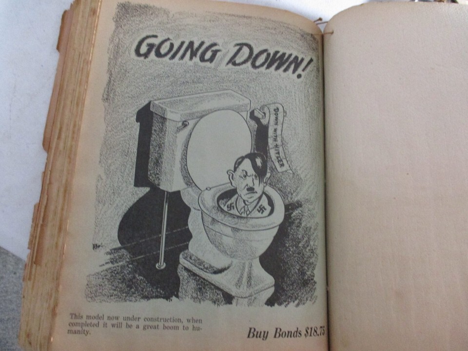 DESCRIPTION OF ITEM: A few of the front cover pages have become brittle and torn, some corner creases, some age browning so not in perfect condition but still holding together just fine, The binding and pages are pretty much held together with string. It is a joke book making fun of a Sears Catalogue, The interesting part is the one of a kind Hitler Jokes it has in it and much more funny advertising, The theme for this issue is Toilet paper