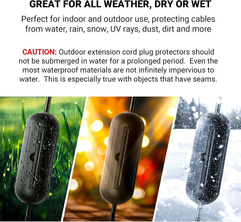 Ultimate Protector for Your Electric Cords and Cables: Wrap our handy cover around your cord connectors to protect them from rain, snow and ice! They?re water resistant to protect against electrical shorts and blowouts! Safety first!