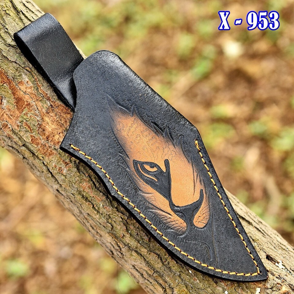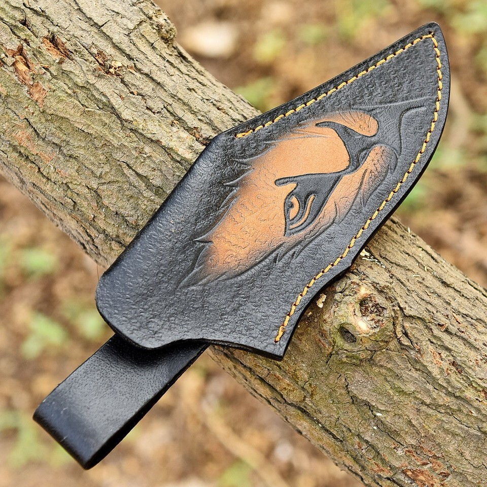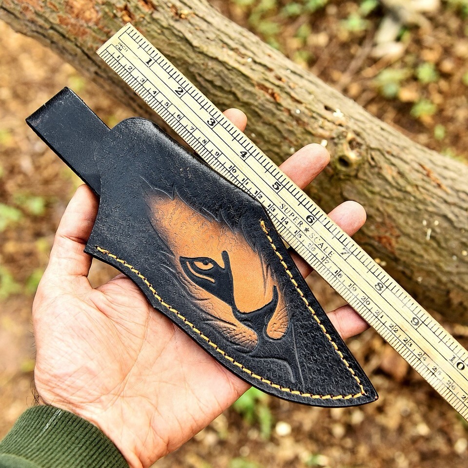 Hand Tiger Engraved Fixed blade Knife Leather Sheath Holster belt Loop Knives